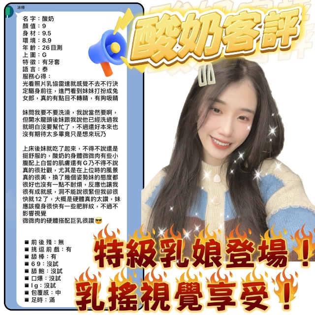 酸奶-身高158/體重47/年紀23/罩杯G/泰國