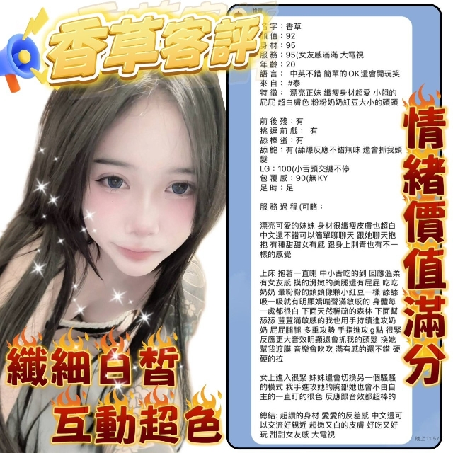 香草-身高158/體重46/年紀19/罩杯C/泰國