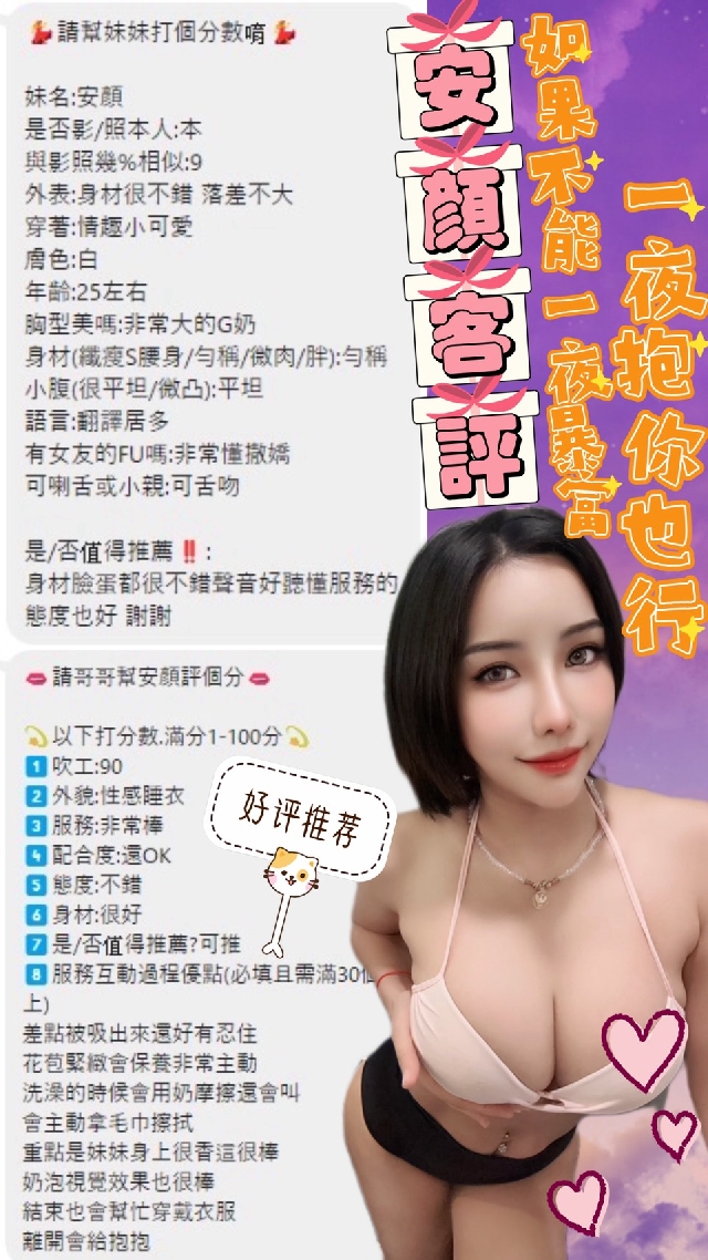 安顏-身高165/年紀25/罩杯G/馬來西亞