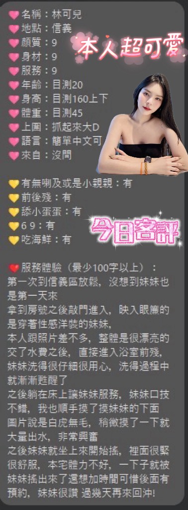 林可兒-身高162/體重45/年紀23/罩杯D/馬來西亞